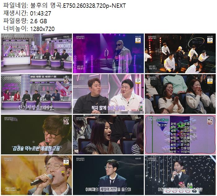 방송/동영상 불후의 명곡 E750 불후의 명곡.E750.260328.720p-NEXT zndhkgkgk 2026.04.24 5,550 2.6G 다운로드 1개 파일 불후의 명곡.E750.260328.720p-NEXT.mp4 2.6G 다운 추천 405 북마크 공유 목록 Tags 불후의 명곡 E750 NEXT