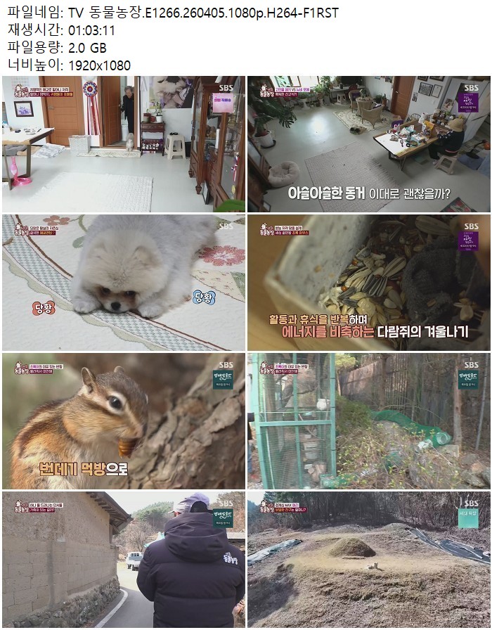 방송/동영상 TV 동물농장 E1266 TV 동물농장.E1266.260405.1080p.H264 디스사랑 2026.04.24 7,852 2.0G 다운로드 1개 파일 TV 동물농장.E1266.260405.1080p.H264-F1RST.mp4 2.0G 다운 추천 385 북마크 공유 목록 Tags TV 동물농장 E1266 H264 F1RST