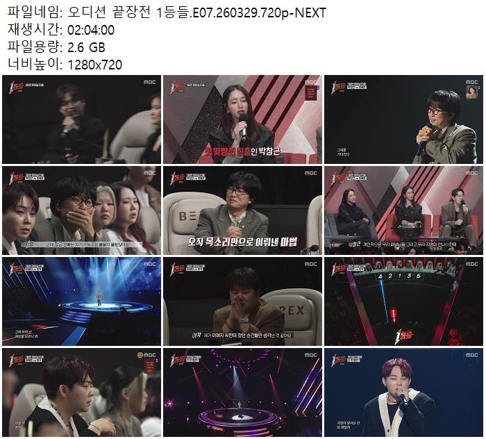 방송/동영상 오디션 끝장전 1등들 오디션 끝장전 1등들.E07.260329.720p-NEXT zndhkgkgk 2026.04.24 3,566 2.6G 다운로드 1개 파일 오디션 끝장전 1등들.E07.260329.720p-NEXT.mp4 2.6G 다운 추천 386 북마크 공유 목록 Tags 오디션 끝장전 1등들 E07 NEXT