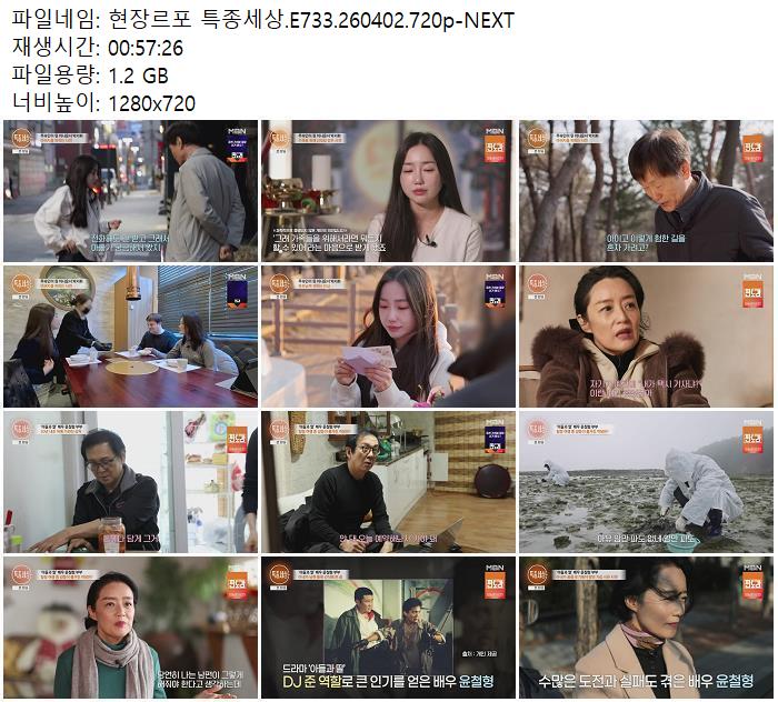 방송/동영상 현장르포 특종세상 E733 현장르포 특종세상.E733.260402.720p-NEXT zndhkgkgk 2026.04.24 4,766 1.2G 다운로드 1개 파일 현장르포 특종세상.E733.260402.720p-NEXT.mp4 1.2G 다운 추천 294 북마크 공유 목록 Tags 현장르포 특종세상 E733 NEXT