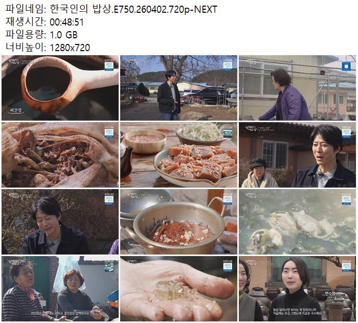 방송/동영상 한국인의 밥상 E750 한국인의 밥상.E750.260402.720p-NEXT zndhkgkgk 2026.04.24 4,938 1.0G 다운로드 1개 파일 한국인의 밥상.E750.260402.720p-NEXT.mp4 1.0G 다운 추천 249 북마크 공유 목록 Tags 한국인의 밥상 E750 NEXT