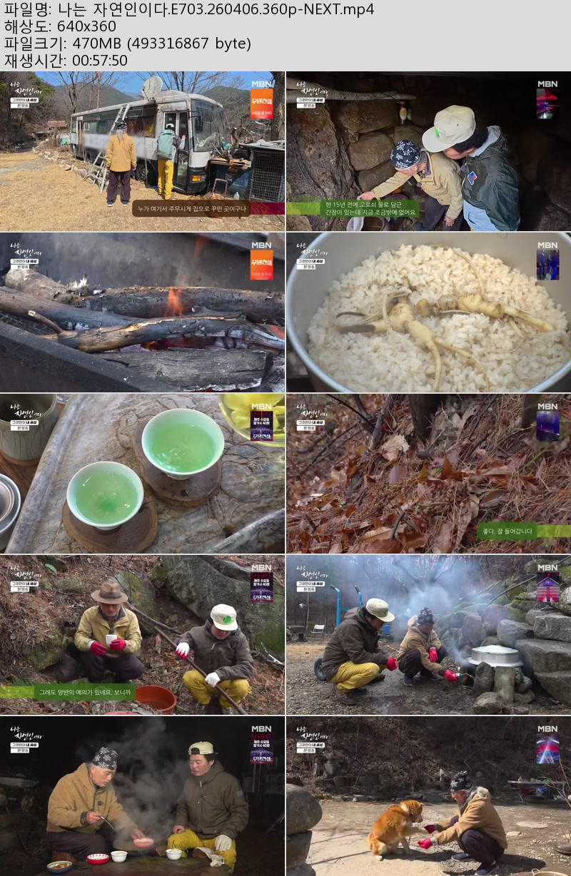 방송/동영상 나는 자연인이다 E703 나는 자연인이다.E703.260406.360p-NEXT 우야쓰꼬 2026.04.24 4,329 470.5M 다운로드 1개 파일 나는 자연인이다.E703.260406.360p-NEXT.mp4 470.5M 다운 추천 215 북마크 공유 목록 Tags 나는 자연인이다 E703 NEXT
