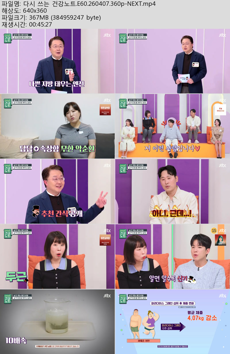방송/동영상 다시 쓰는 건강노트 다시 쓰는 건강노트.E60.260407.360p-NEXT 우야쓰꼬 2026.04.24 7,859 367.1M 다운로드 1개 파일 다시 쓰는 건강노트.E60.260407.360p-NEXT.mp4 367.1M 다운 추천 200 북마크 공유 목록 Tags 다시 쓰는 건강노트 E60 NEXT