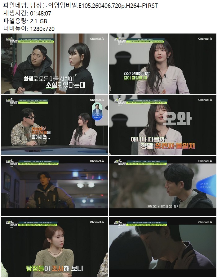 방송/동영상 탐정들의영업비밀 E105 H264 탐정들의영업비밀.E105.260406.720p.H264 디스사랑 2026.04.24 7,585 2.1G 다운로드 1개 파일 탐정들의영업비밀.E105.260406.720p.H264-F1RST.mp4 2.1G 다운 추천 382 북마크 공유 목록 Tags 탐정들의영업비밀 E105 H264 F1RST