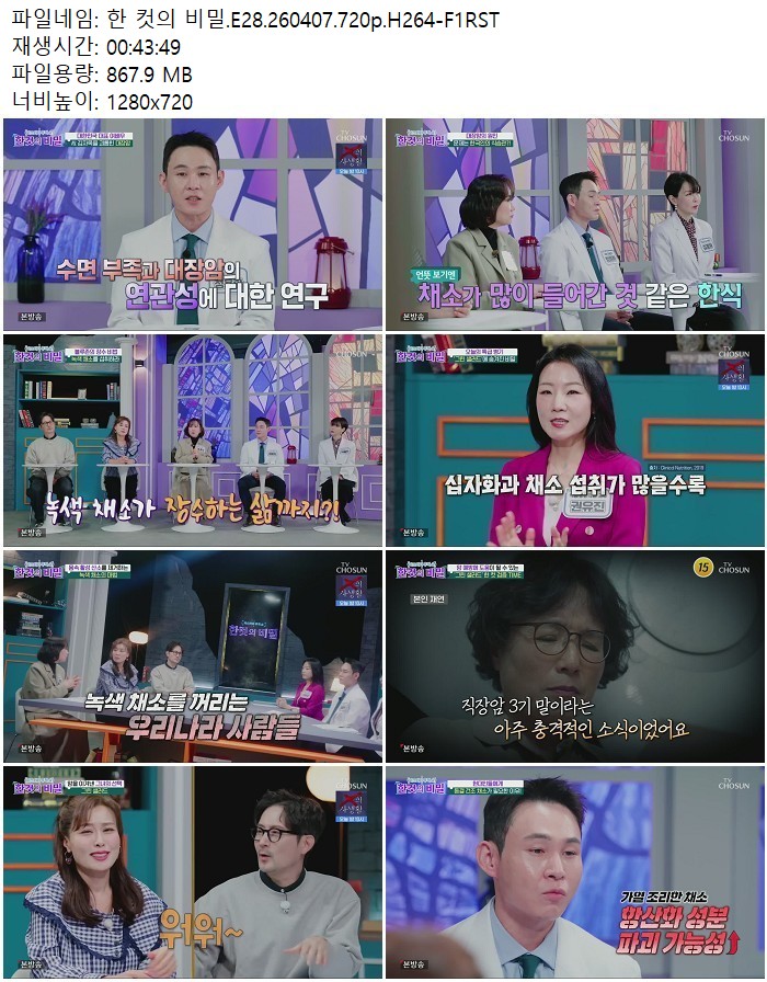 방송/동영상 컷의 비밀 E28 한 컷의 비밀.E28.260407.720p.H264 디스사랑 2026.04.24 4,276 867.9M 다운로드 1개 파일 한 컷의 비밀.E28.260407.720p.H264-F1RST.mp4 867.9M 다운 추천 251 북마크 공유 목록 Tags 컷의 비밀 E28 H264 F1RST