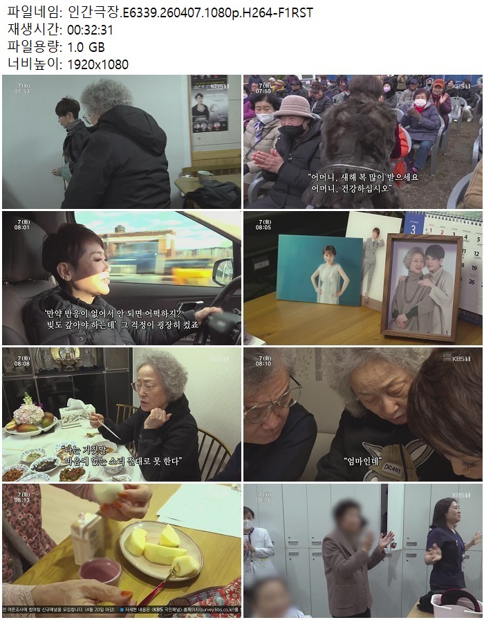 방송/동영상 인간극장 E6339 H264 인간극장.E6339.260407.1080p.H264 디스사랑 2026.04.24 4,305 1.0G 다운로드 1개 파일 인간극장.E6339.260407.1080p.H264-F1RST.mp4 1.0G 다운 추천 237 북마크 공유 목록 Tags 인간극장 E6339 H264 F1RST