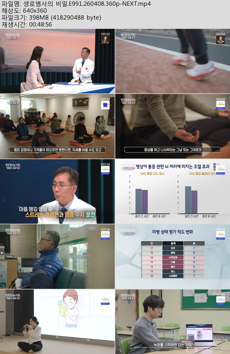 방송/동영상 생로병사의 비밀 E991 생로병사의 비밀.E991.260408.360p-NEXT 우야쓰꼬 2026.04.24 7,365 398.9M 다운로드 1개 파일 생로병사의 비밀.E991.260408.360p-NEXT.mp4 398.9M 다운 추천 209 북마크 공유 목록 Tags 생로병사의 비밀 E991 NEXT