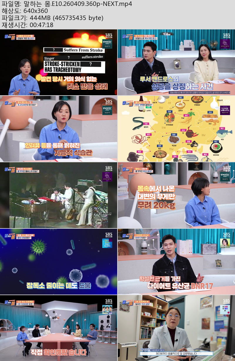 방송/동영상 말하는 E10 NEXT 말하는 몸.E10.260409.360p-NEXT 우야쓰꼬 2026.04.24 4,257 444.2M 다운로드 1개 파일 말하는 몸.E10.260409.360p-NEXT.mp4 444.2M 다운 추천 429 북마크 공유 목록 Tags 말하는 E10 NEXT