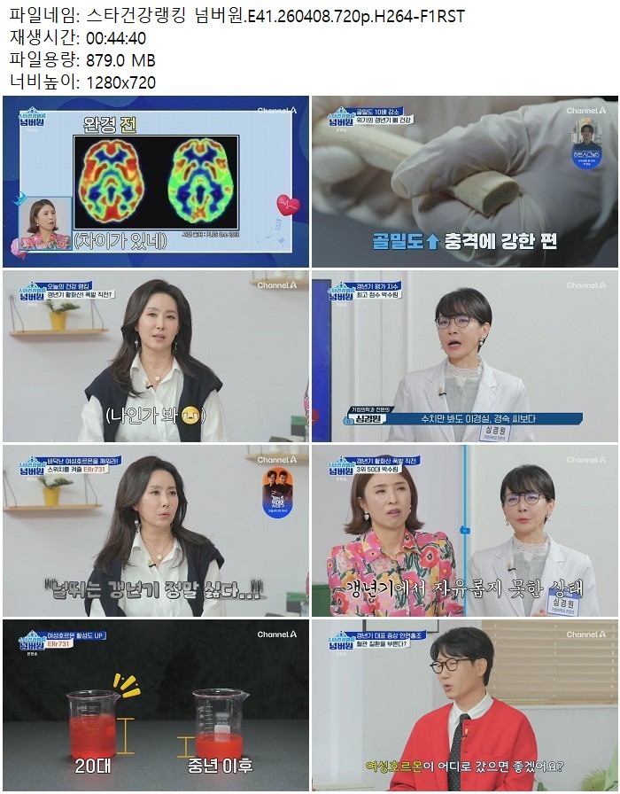 방송/동영상 스타건강랭킹 넘버원 E41 스타건강랭킹 넘버원.E41.260408.720p.H264 디스사랑 2026.04.24 4,209 879.0M 다운로드 1개 파일 스타건강랭킹 넘버원.E41.260408.720p.H264-F1RST.mp4 879.0M 다운 추천 310 북마크 공유 목록 Tags 스타건강랭킹 넘버원 E41 H264 F1RST