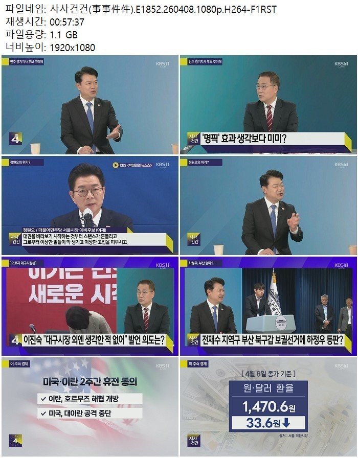 방송/동영상 사사건건 事事件件 E1852 사사건건(事事件件).E1852.260408.1080p.H264 디스사랑 2026.04.24 5,526 1.1G 다운로드 1개 파일 사사건건(事事件件).E1852.260408.1080p.H264-F1RST.mp4 1.1G 다운 추천 403 북마크 공유 목록 Tags 사사건건 事事件件 E1852 H264 F1RST