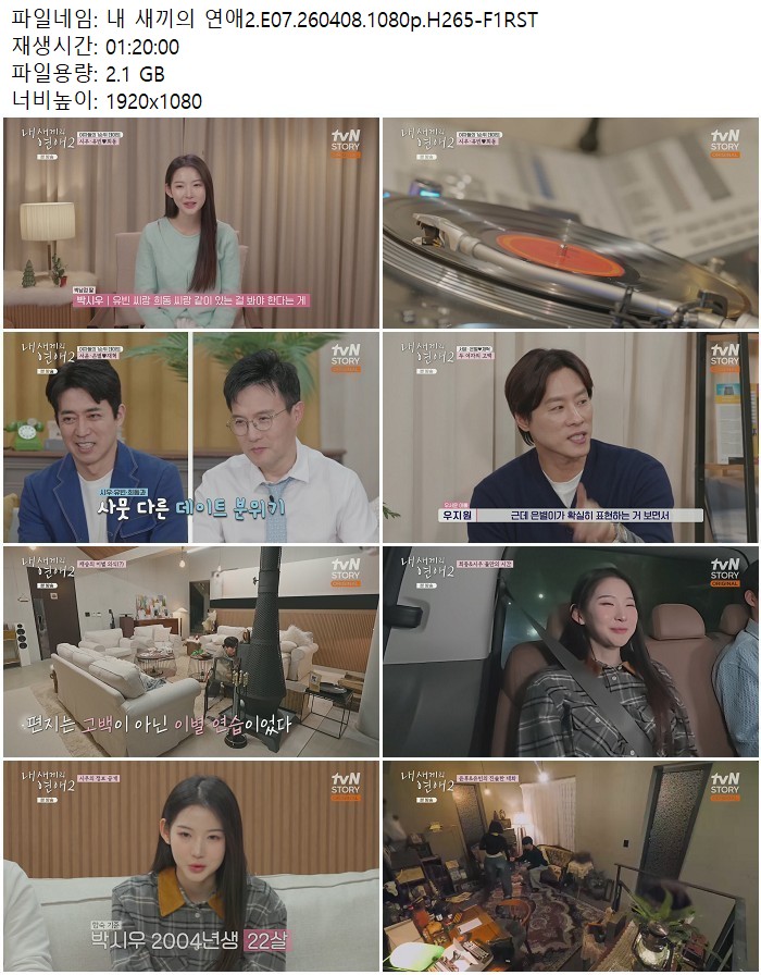 방송/동영상 새끼의 연애2 E07 내 새끼의 연애2.E07.260408.1080p.H265 디스사랑 2026.04.24 5,826 2.1G 다운로드 1개 파일 내 새끼의 연애2.E07.260408.1080p.H265-F1RST.mp4 2.1G 다운 추천 265 북마크 공유 목록 Tags 새끼의 연애2 E07 H265 F1RST