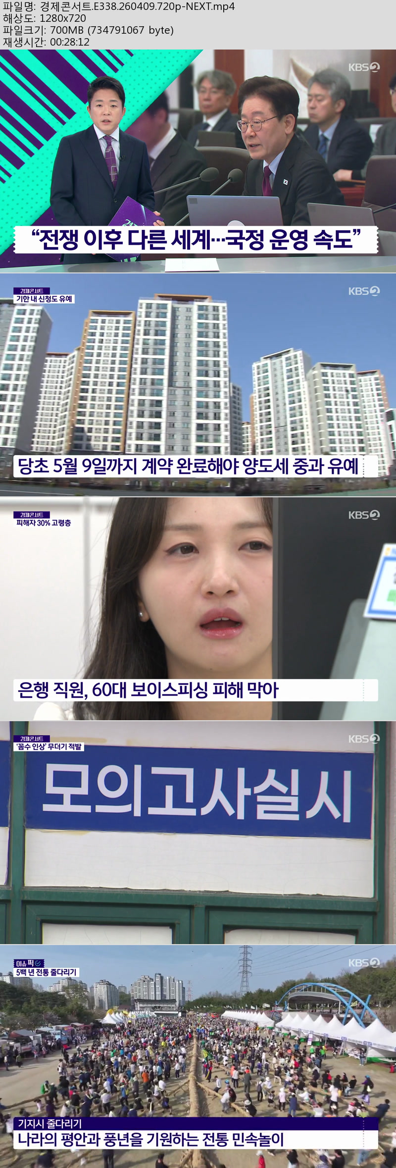 방송/동영상 경제콘서트 E338 NEXT 경제콘서트.E338.260409.720p-NEXT 방송다좋아 2026.04.24 5,543 700.8M 다운로드 1개 파일 경제콘서트.E338.260409.720p-NEXT.mp4 700.8M 다운 추천 438 북마크 공유 목록 Tags 경제콘서트 E338 NEXT