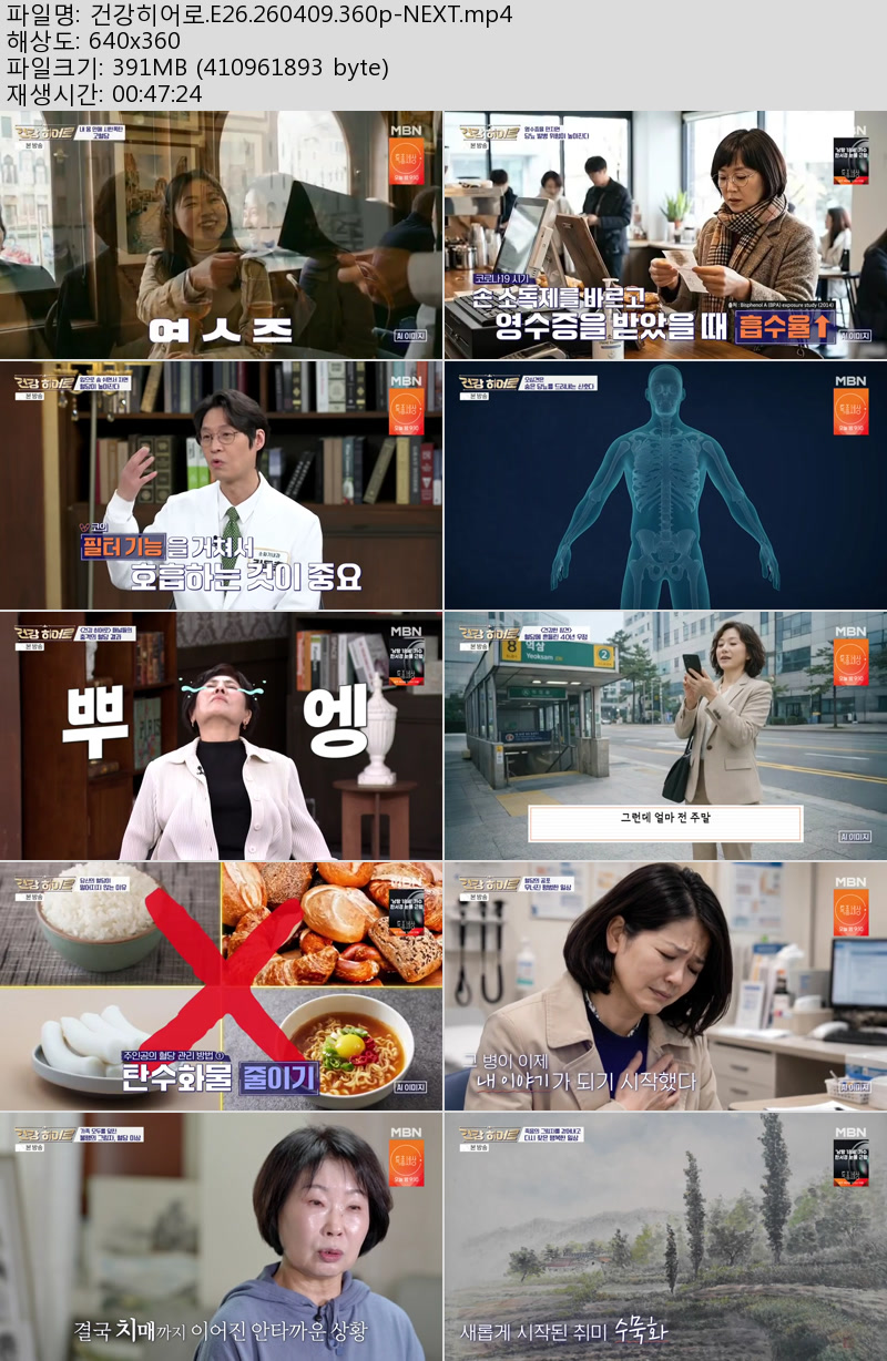 방송/동영상 건강히어로 E26 NEXT 건강히어로.E26.260409.360p-NEXT 우야쓰꼬 2026.04.24 3,079 391.9M 다운로드 1개 파일 건강히어로.E26.260409.360p-NEXT.mp4 391.9M 다운 추천 484 북마크 공유 목록 Tags 건강히어로 E26 NEXT