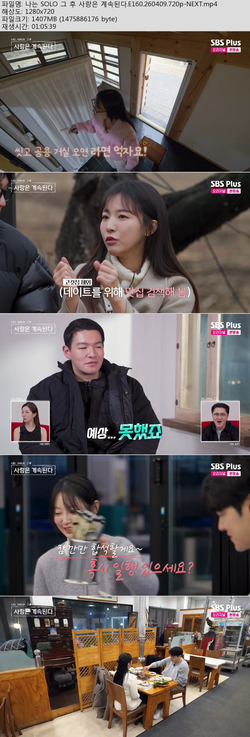 방송/동영상 나는 SOLO 사랑은 나는 SOLO 그 후 사랑은 계속된다.E160.260409.720p-NEXT 그레이트캣 2026.04.24 3,272 1.4G 다운로드 1개 파일 나는 SOLO 그 후 사랑은 계속된다.E160.260409.720p-NEXT.mp4 1.4G 다운 추천 323 북마크 공유 목록 Tags 나는 SOLO 사랑은 계속된다 E160