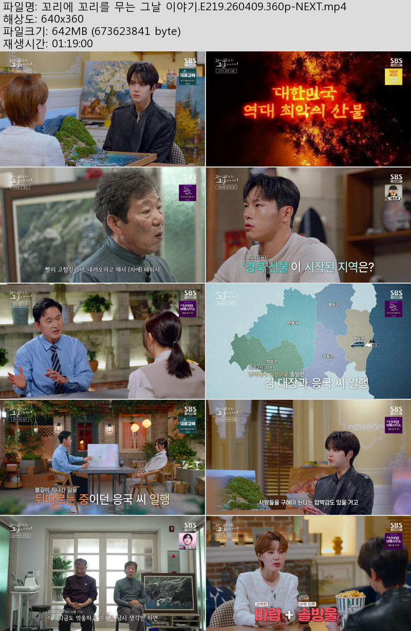 방송/동영상 꼬리에 꼬리를 무는 꼬리에 꼬리를 무는 그날 이야기.E219.260409.360p-NEXT 우야쓰꼬 2026.04.24 7,762 642.4M 다운로드 1개 파일 꼬리에 꼬리를 무는 그날 이야기.E219.260409.360p-NEXT.mp4 642.4M 다운 추천 329 북마크 공유 목록 Tags 꼬리에 꼬리를 무는 그날 이야기