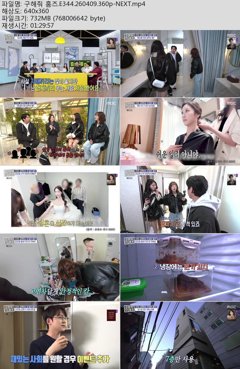 방송/동영상 구해줘 홈즈 E344 구해줘 홈즈.E344.260409.360p-NEXT 우야쓰꼬 2026.04.24 5,254 732.4M 다운로드 1개 파일 구해줘 홈즈.E344.260409.360p-NEXT.mp4 732.4M 다운 추천 266 북마크 공유 목록 Tags 구해줘 홈즈 E344 NEXT