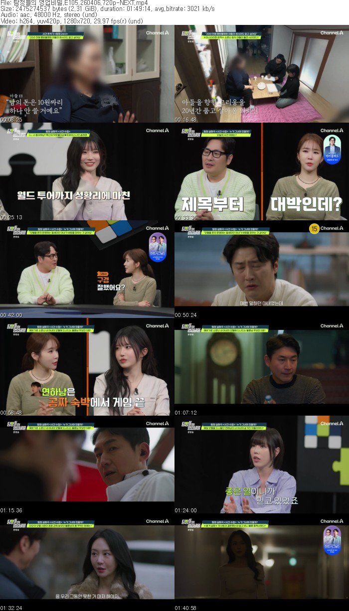 방송/동영상 탐정들의 영업비밀 E105 탐정들의 영업비밀.E105.260406.720p-NEXT sukyungyi 2026.04.24 6,513 2.3G 다운로드 1개 파일 탐정들의 영업비밀.E105.260406.720p-NEXT.mp4 2.3G 다운 추천 200 북마크 공유 목록 Tags 탐정들의 영업비밀 E105 NEXT
