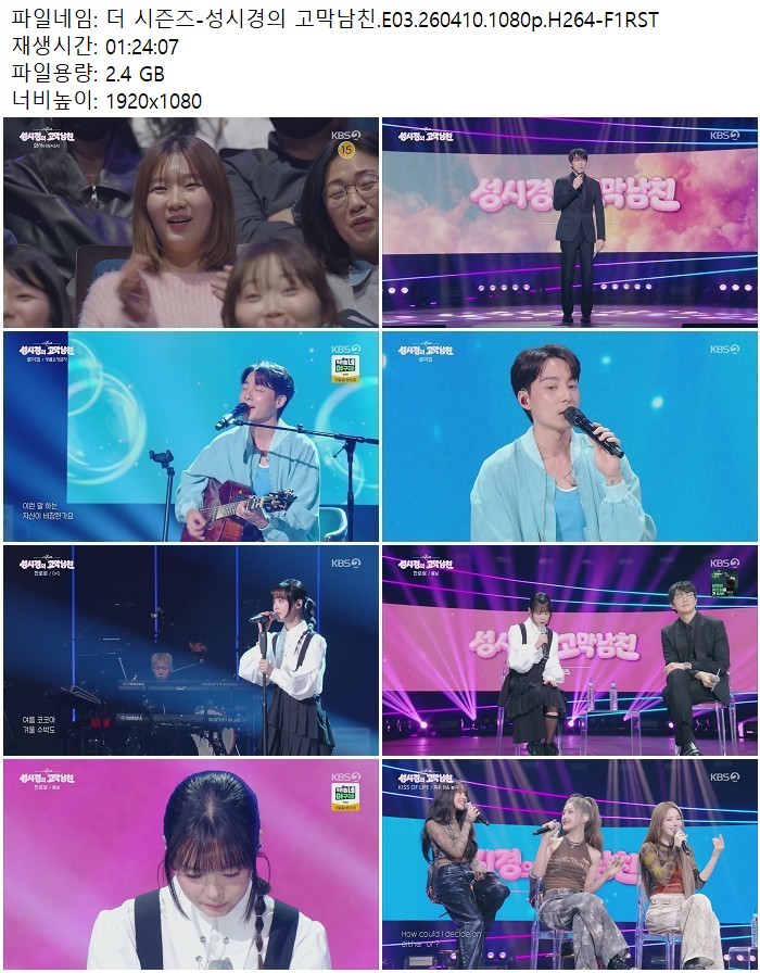 방송/동영상 시즌즈 성시경의 고막남친 더 시즌즈-성시경의 고막남친.E03.260410.1080p.H264 디스사랑 2026.04.24 5,501 2.4G 다운로드 1개 파일 더 시즌즈-성시경의 고막남친.E03.260410.1080p.H264-F1RST.mp4 2.4G 다운 추천 457 북마크 공유 목록 Tags 시즌즈 성시경의 고막남친 E03 H264