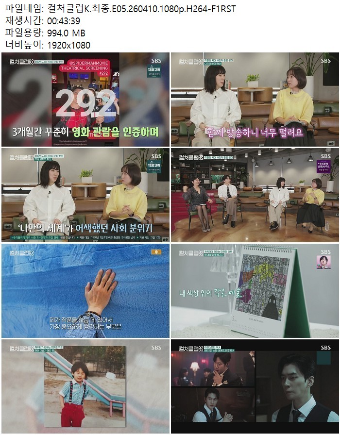 방송/동영상 컬처클럽K 최종 E05 컬처클럽K.최종.E05.260410.1080p.H264 디스사랑 2026.04.24 5,317 994.0M 다운로드 1개 파일 컬처클럽K.최종.E05.260410.1080p.H264-F1RST.mp4 994.0M 다운 추천 448 북마크 공유 목록 Tags 컬처클럽K 최종 E05 H264 F1RST