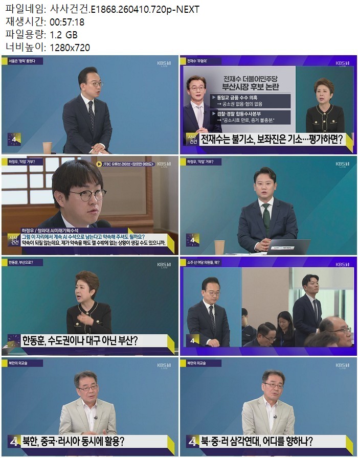 방송/동영상 사사건건 E1868 NEXT 사사건건.E1868.260410.720p-NEXT 디스사랑 2026.04.24 4,717 1.2G 다운로드 1개 파일 사사건건.E1868.260410.720p-NEXT.mp4 1.2G 다운 추천 427 북마크 공유 목록 Tags 사사건건 E1868 NEXT