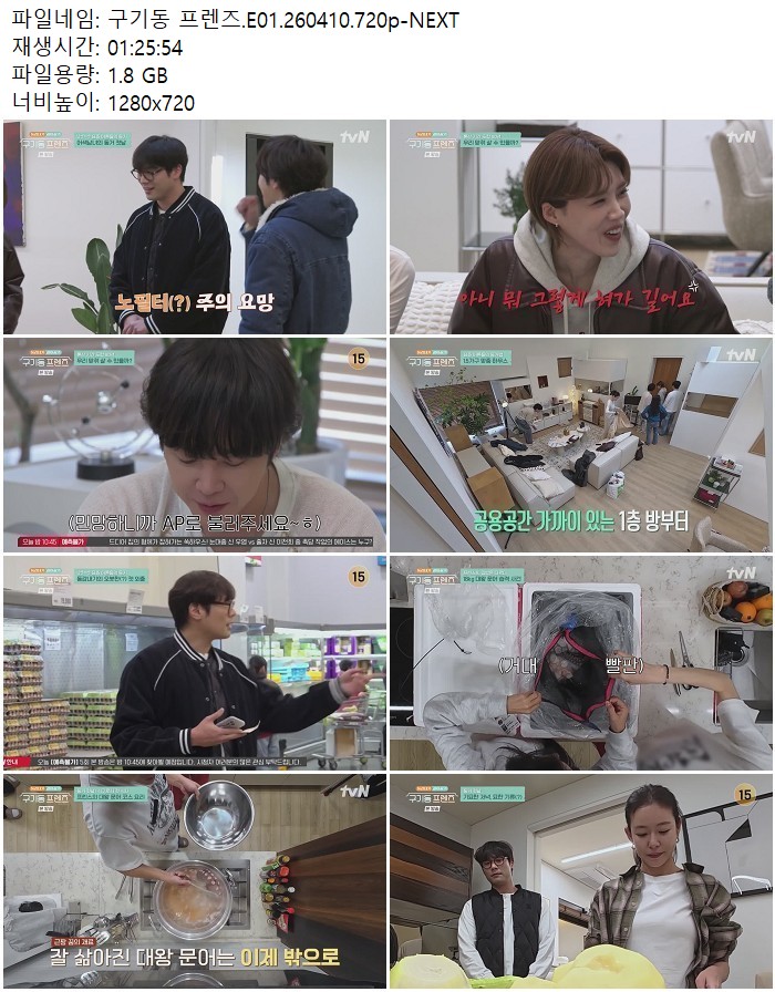 방송/동영상 구기동 프렌즈 E01 구기동 프렌즈.E01.260410.720p-NEXT 디스사랑 2026.04.24 3,245 1.8G 다운로드 1개 파일 구기동 프렌즈.E01.260410.720p-NEXT.mp4 1.8G 다운 추천 444 북마크 공유 목록 Tags 구기동 프렌즈 E01 NEXT
