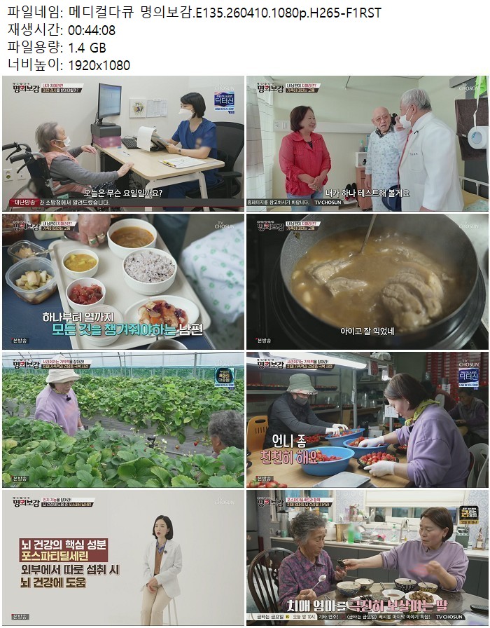 방송/동영상 메디컬다큐 명의보감 E135 메디컬다큐 명의보감.E135.260410.1080p.H265 디스사랑 2026.04.24 4,513 1.4G 다운로드 1개 파일 메디컬다큐 명의보감.E135.260410.1080p.H265-F1RST.mp4 1.4G 다운 추천 378 북마크 공유 목록 Tags 메디컬다큐 명의보감 E135 H265 F1RST