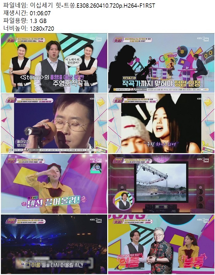 방송/동영상 이십세기 트쏭 E308 이십세기 힛-트쏭.E308.260410.720p.H264 디스사랑 2026.04.24 6,646 1.3G 다운로드 1개 파일 이십세기 힛-트쏭.E308.260410.720p.H264-F1RST.mp4 1.3G 다운 추천 382 북마크 공유 목록 Tags 이십세기 트쏭 E308 H264 F1RST