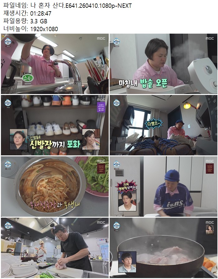 방송/동영상 혼자 산다 E641 나 혼자 산다.E641.260410.1080p-NEXT 디스사랑 2026.04.24 5,329 3.3G 다운로드 1개 파일 나 혼자 산다.E641.260410.1080p-NEXT.mp4 3.3G 다운 추천 414 북마크 공유 목록 Tags 혼자 산다 E641 NEXT