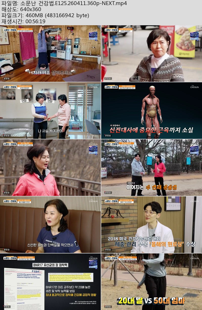 방송/동영상 소문난 건강법 E125 소문난 건강법.E125.260411.360p-NEXT 우야쓰꼬 2026.04.24 3,650 460.8M 다운로드 1개 파일 소문난 건강법.E125.260411.360p-NEXT.mp4 460.8M 다운 추천 498 북마크 공유 목록 Tags 소문난 건강법 E125 NEXT