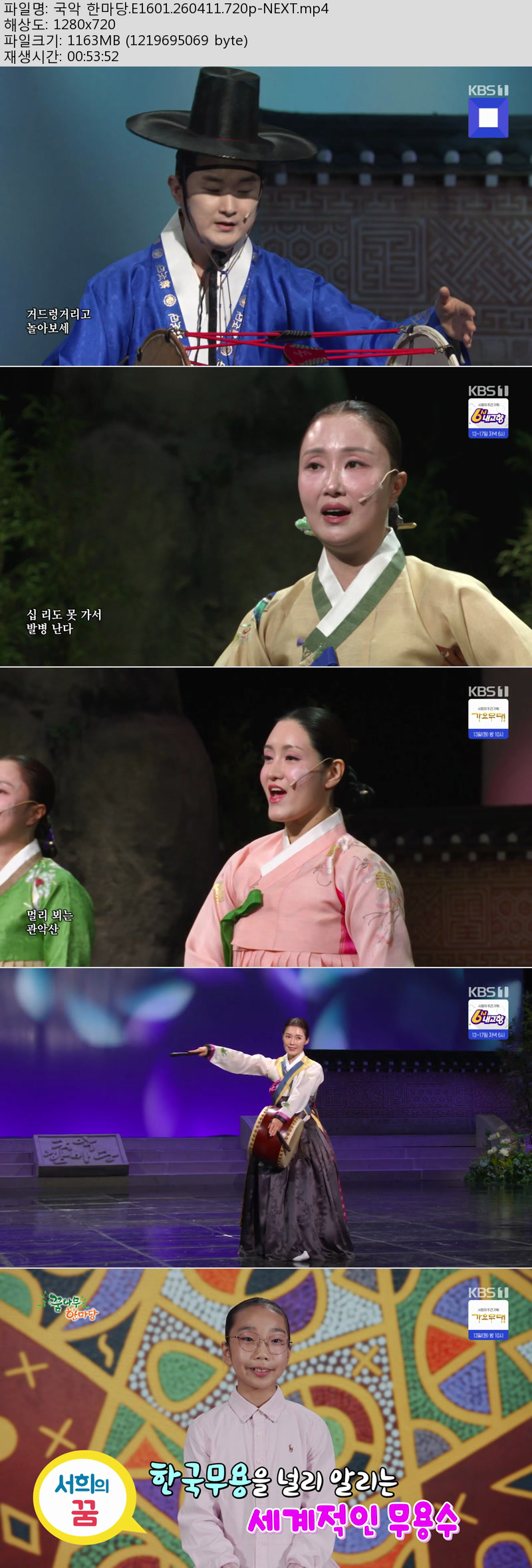 방송/동영상 국악 한마당 E1601 국악 한마당.E1601.260411.720p-NEXT 방송다좋아 2026.04.24 6,070 1.1G 다운로드 1개 파일 국악 한마당.E1601.260411.720p-NEXT.mp4 1.1G 다운 추천 259 북마크 공유 목록 Tags 국악 한마당 E1601 NEXT