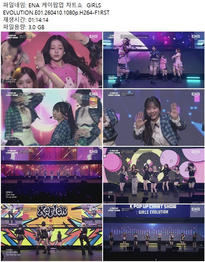 방송/동영상 ENA 케이팝업 차트쇼 ENA 케이팝업 차트쇼 GIRLS EVOLUTION.E01.260410.1080p.H264 디스사랑 2026.04.24 4,576 3.0G 다운로드 1개 파일 ENA 케이팝업 차트쇼 GIRLS EVOLUTION.E01.260410.1080p.H264-F1RST.mp4 3.0G 다운 추천 313 북마크 공유 목록 Tags ENA 케이팝업 차트쇼 GIRLS EVOLUTION