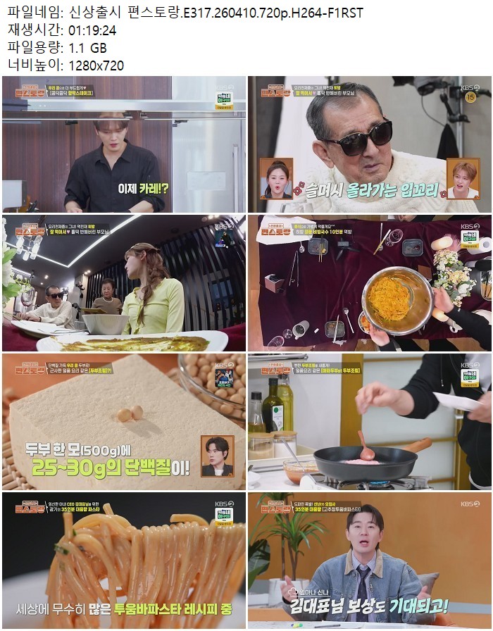 방송/동영상 신상출시 편스토랑 E317 신상출시 편스토랑.E317.260410.720p.H264 디스사랑 2026.04.24 6,932 1.1G 다운로드 1개 파일 신상출시 편스토랑.E317.260410.720p.H264-F1RST.mp4 1.1G 다운 추천 285 북마크 공유 목록 Tags 신상출시 편스토랑 E317 H264 F1RST
