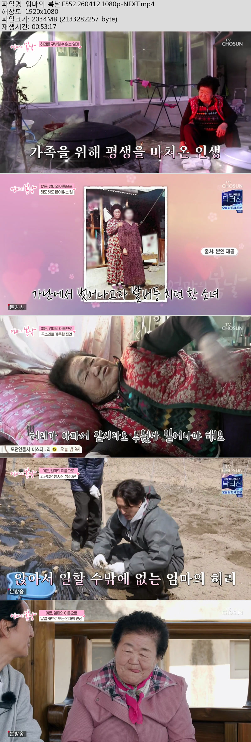 방송/동영상 엄마의 봄날 E552 엄마의 봄날.E552.260412.1080p-NEXT 미아아빠 2026.04.24 4,232 2.0G 다운로드 1개 파일 엄마의 봄날.E552.260412.1080p-NEXT.mp4 2.0G 다운 추천 482 북마크 공유 목록 Tags 엄마의 봄날 E552 NEXT