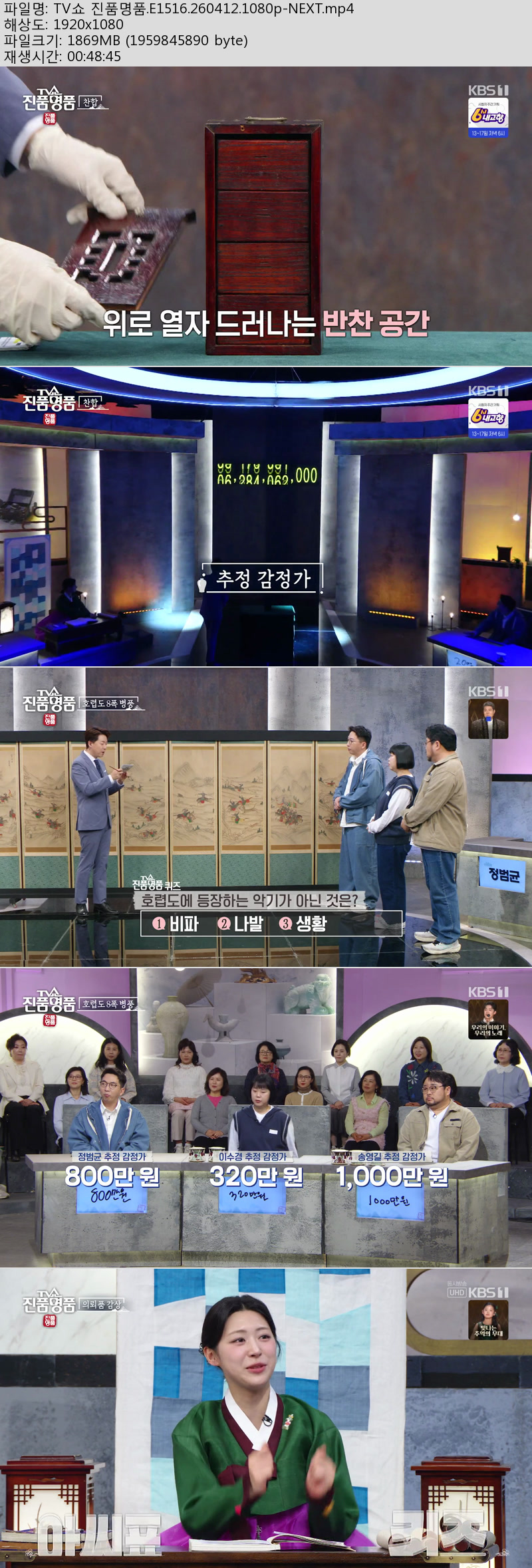 방송/동영상 TV쇼 진품명품 E1516 TV쇼 진품명품.E1516.260412.1080p-NEXT 에이버 2026.04.24 5,436 1.8G 다운로드 1개 파일 TV쇼 진품명품.E1516.260412.1080p-NEXT.mp4 1.8G 다운 추천 285 북마크 공유 목록 Tags TV쇼 진품명품 E1516 NEXT