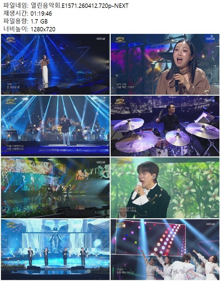 방송/동영상 열린음악회 E1571 NEXT 열린음악회.E1571.260412.720p-NEXT 디스사랑 2026.04.24 6,511 1.7G 다운로드 1개 파일 열린음악회.E1571.260412.720p-NEXT.mp4 1.7G 다운 추천 387 북마크 공유 목록 Tags 열린음악회 E1571 NEXT
