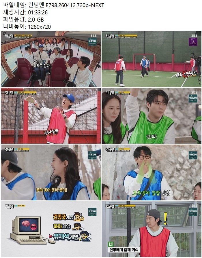 방송/동영상 런닝맨 E798 NEXT 런닝맨.E798.260412.720p-NEXT 디스사랑 2026.04.24 3,645 2.0G 다운로드 1개 파일 런닝맨.E798.260412.720p-NEXT.mp4 2.0G 다운 추천 464 북마크 공유 목록 Tags 런닝맨 E798 NEXT