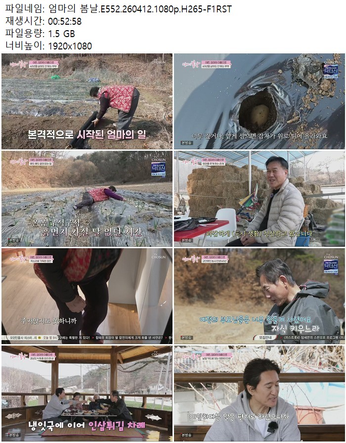 방송/동영상 엄마의 봄날 E552 엄마의 봄날.E552.260412.1080p.H265 디스사랑 2026.04.24 3,627 1.5G 다운로드 1개 파일 엄마의 봄날.E552.260412.1080p.H265-F1RST.mp4 1.5G 다운 추천 252 북마크 공유 목록 Tags 엄마의 봄날 E552 H265 F1RST