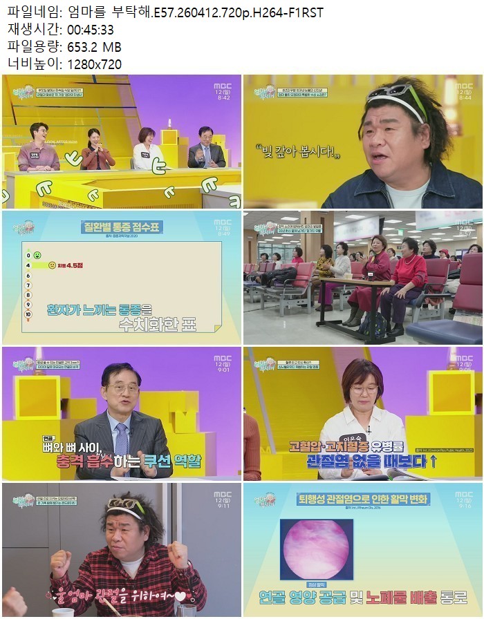 방송/동영상 엄마를 부탁해 E57 엄마를 부탁해.E57.260412.720p.H264 디스사랑 2026.04.24 7,107 653.2M 다운로드 1개 파일 엄마를 부탁해.E57.260412.720p.H264-F1RST.mp4 653.2M 다운 추천 297 북마크 공유 목록 Tags 엄마를 부탁해 E57 H264 F1RST