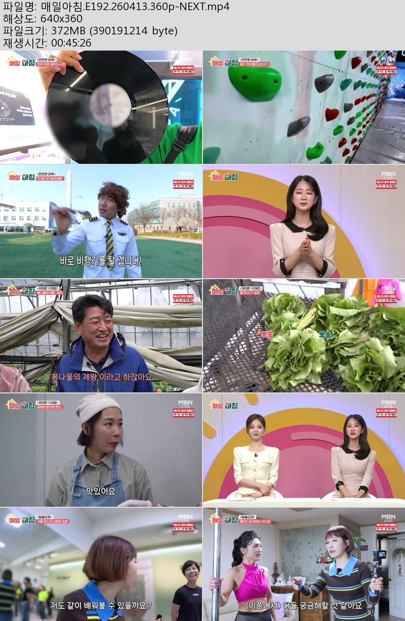 방송/동영상 매일아침 E192 NEXT 매일아침.E192.260413.360p-NEXT 우야쓰꼬 2026.04.24 7,287 372.1M 다운로드 1개 파일 매일아침.E192.260413.360p-NEXT.mp4 372.1M 다운 추천 456 북마크 공유 목록 Tags 매일아침 E192 NEXT
