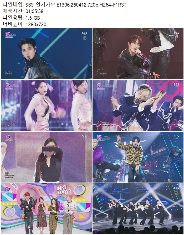 방송/동영상 SBS 인기가요 E1306 SBS 인기가요.E1306.260412.720p.H264 디스사랑 2026.04.24 3,881 1.5G 다운로드 1개 파일 SBS 인기가요.E1306.260412.720p.H264-F1RST.mp4 1.5G 다운 추천 302 북마크 공유 목록 Tags SBS 인기가요 E1306 H264 F1RST