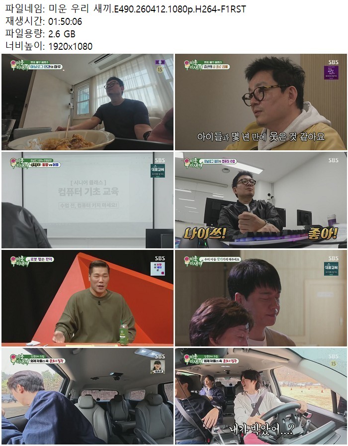 방송/동영상 미운 우리 새끼 미운 우리 새끼.E490.260412.1080p.H264 디스사랑 2026.04.24 7,119 2.6G 다운로드 1개 파일 미운 우리 새끼.E490.260412.1080p.H264-F1RST.mp4 2.6G 다운 추천 433 북마크 공유 목록 Tags 미운 우리 새끼 E490 H264