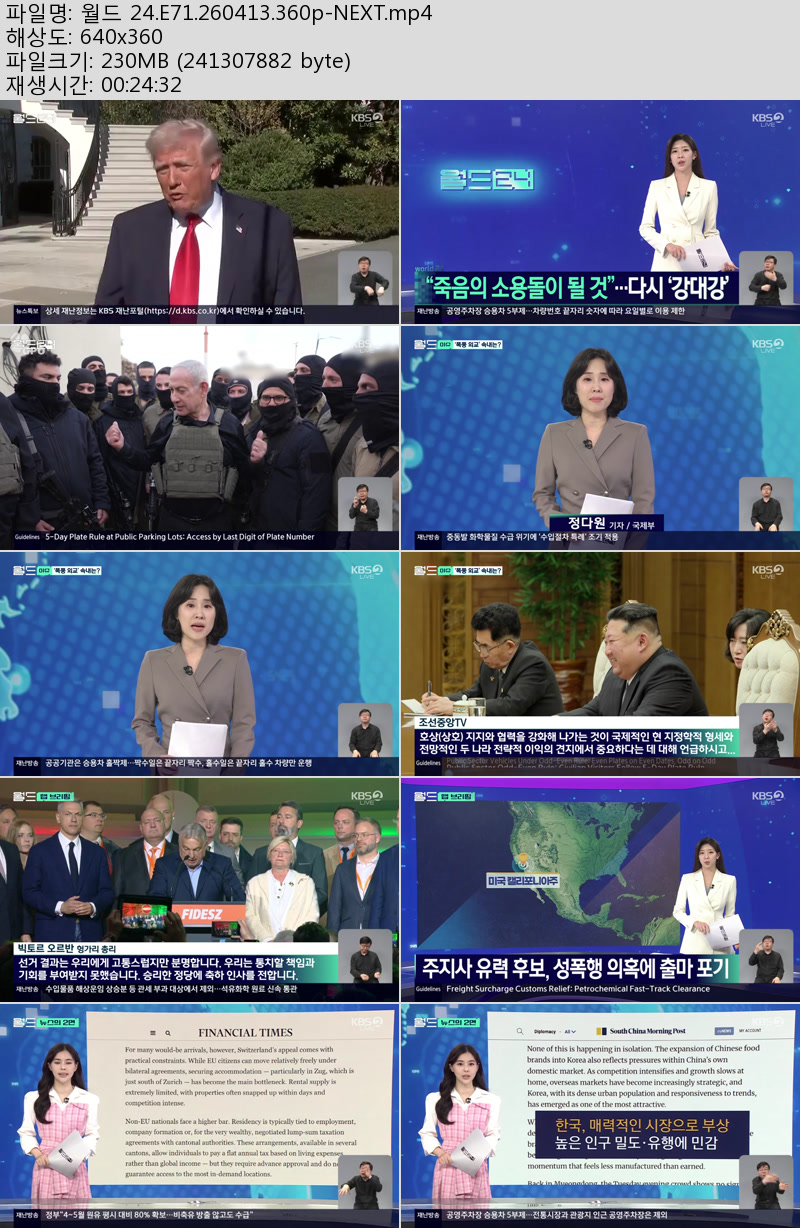 방송/동영상 월드 E71 NEXT 월드 24.E71.260413.360p-NEXT 우야쓰꼬 2026.04.24 7,379 230.1M 다운로드 1개 파일 월드 24.E71.260413.360p-NEXT.mp4 230.1M 다운 추천 417 북마크 공유 목록 Tags 월드 E71 NEXT