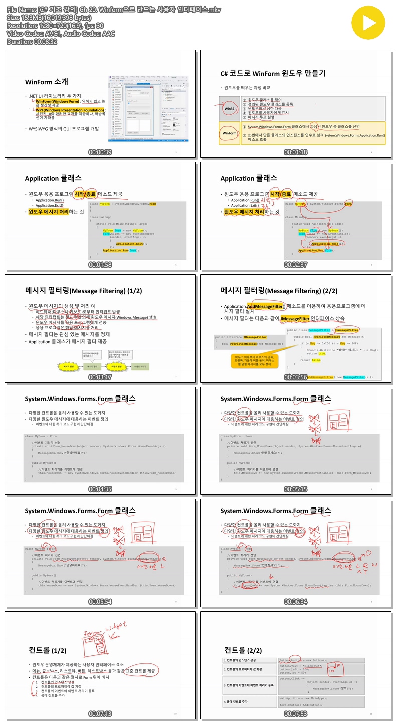 교육 기초 강의 Ch [C 기초 강의] Ch 20. Winform으로 만드는 사용자 인터페이스 jibori 2026.04.24 3,840 15.3M 다운로드 1개 파일 [C 기초 강의] Ch 20. Winform으로 만드는 사용자 인터페이스.mkv 15.3M 다운 추천 379 북마크 공유 목록 Tags 기초 강의 Ch Winform으로 만드는