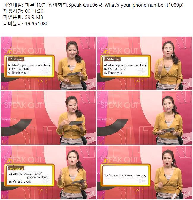 교육 하루 10분 영어회화 하루 10분 영어회화.Speak Out.06강_What's your phone number (10.. 쿠무 2026.04.24 4,458 59.9M 다운로드 1개 파일 하루 10분 영어회화.Speak Out.06강_What's your phone number (1080p).mkv 59.9M 다운 추천 428 북마크 공유 목록 Tags 하루 10분 영어회화 Speak Out