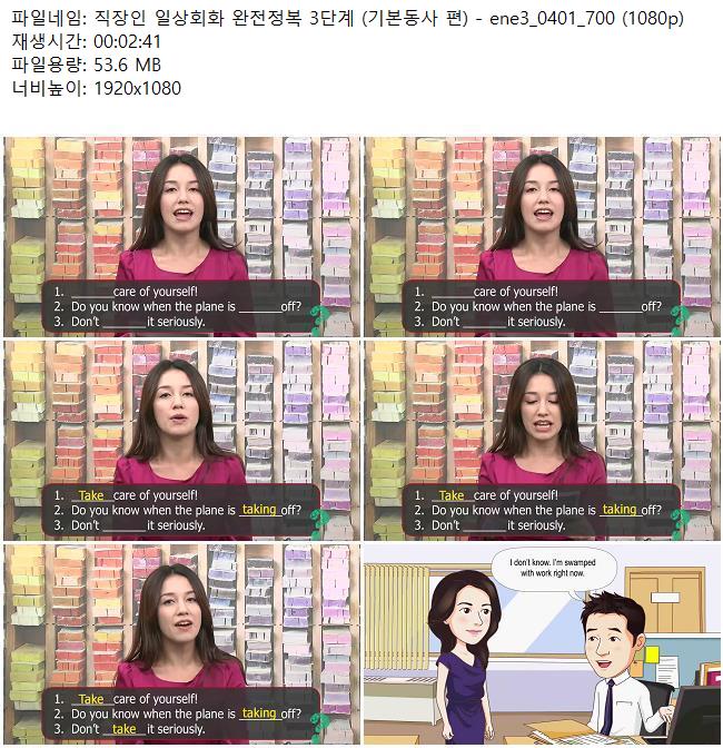교육 직장인 일상회화 완전정복 직장인 일상회화 완전정복 3단계 (기본동사 편) - ene3_0401_700 (.. 쿠무 2026.04.24 4,667 53.6M 다운로드 1개 파일 직장인 일상회화 완전정복 3단계 (기본동사 편) - ene3_0401_700 (1080p).. 53.6M 다운 추천 354 북마크 공유 목록 Tags 직장인 일상회화 완전정복 3단계 기본동사