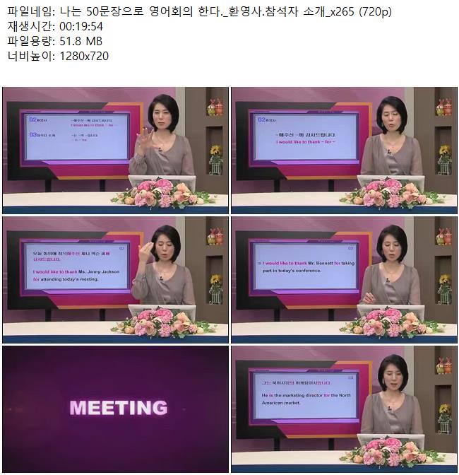 교육 나는 50문장으로 영어회의 나는 50문장으로 영어회의 한다._환영사.참석자 소개_x265 (720p) 쿠무 2026.04.24 7,436 51.8M 다운로드 1개 파일 나는 50문장으로 영어회의 한다._환영사.참석자 소개_x265 (720p).mkv 51.8M 다운 추천 488 북마크 공유 목록 Tags 나는 50문장으로 영어회의 한다 환영사
