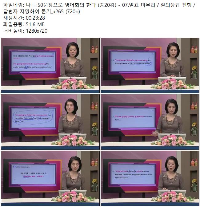 교육 나는 50문장으로 영어회의 나는 50문장으로 영어회의 한다 (총20강) - 07.발표 마무리/질의.. 쿠무 2026.04.24 7,973 51.6M 다운로드 1개 파일 나는 50문장으로 영어회의 한다 (총20강) - 07.발표 마무리/질의응답 진.. 51.6M 다운 추천 276 북마크 공유 목록 Tags 나는 50문장으로 영어회의 한다 총20강
