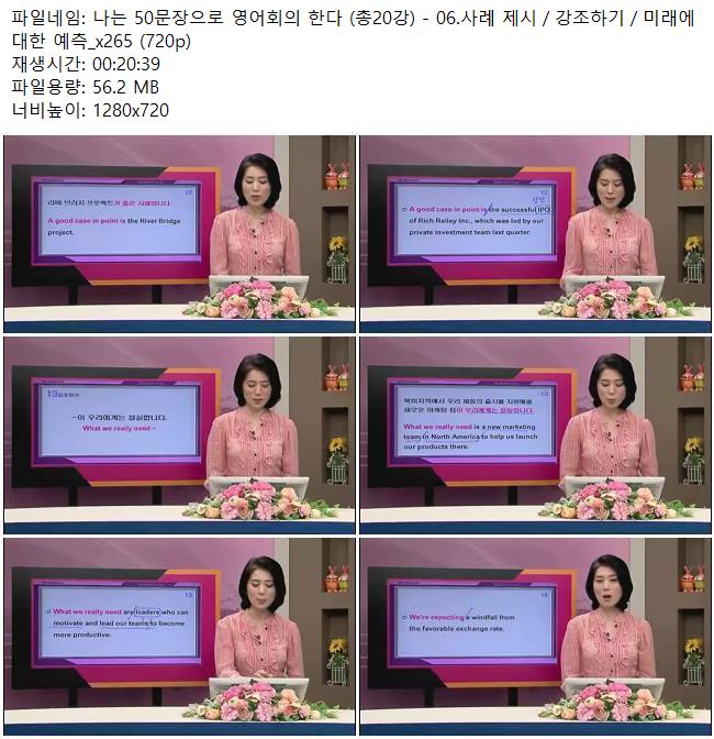 교육 나는 50문장으로 영어회의 나는 50문장으로 영어회의 한다 (총20강) - 06.사례 제시/강조하.. 쿠무 2026.04.24 7,027 56.2M 다운로드 1개 파일 나는 50문장으로 영어회의 한다 (총20강) - 06.사례 제시/강조하기/미.. 56.2M 다운 추천 393 북마크 공유 목록 Tags 나는 50문장으로 영어회의 한다 총20강