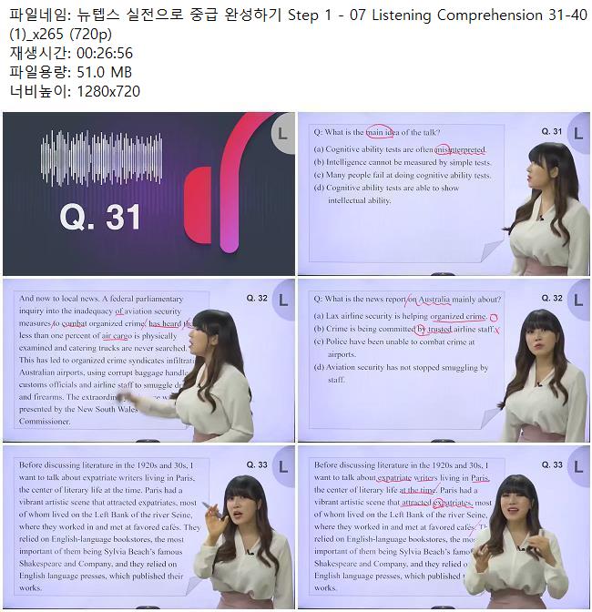 교육 뉴텝스 실전으로 중급 뉴텝스 실전으로 중급 완성하기 Step 1 - 07 Listening Comprehens.. 쿠무 2026.04.24 6,167 51.0M 다운로드 1개 파일 뉴텝스 실전으로 중급 완성하기 Step 1 - 07 Listening Comprehension 31.. 51.0M 다운 추천 301 북마크 공유 목록 Tags 뉴텝스 실전으로 중급 완성하기 Step