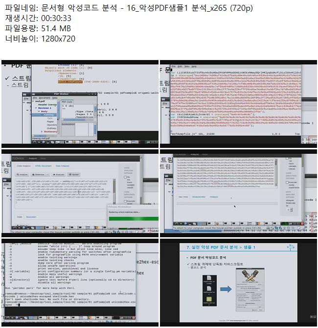 교육 문서형 악성코드 분석 문서형 악성코드 분석 - 16_악성PDF샘플1 분석_x265 (720p) 쿠무 2026.04.24 4,655 51.4M 다운로드 1개 파일 문서형 악성코드 분석 - 16_악성PDF샘플1 분석_x265 (720p).mkv 51.4M 다운 추천 267 북마크 공유 목록 Tags 문서형 악성코드 분석 악성PDF샘플1 x265